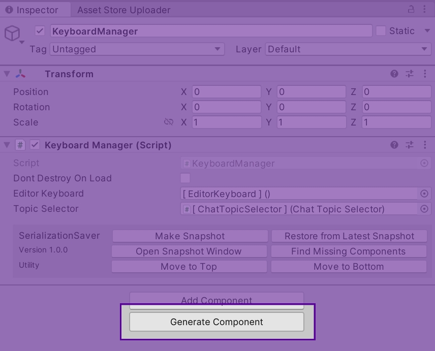Using the Unity Component Generator